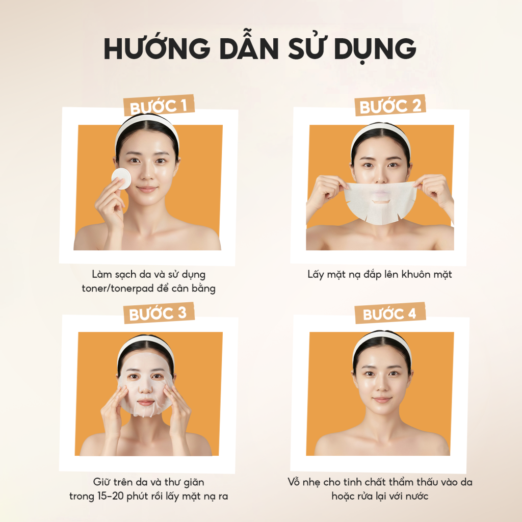 - Bước 4: Vỗ nhẹ cho tinh chất thẩm thấu vào da hoặc rửa lại với nước